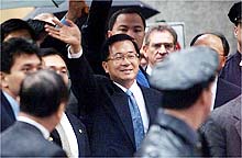 Taiwan President Attracts Supporters NEW YORK (AP) - Taiwan's president has arrived in New York City for a stopover - the latest potential stumbling block in relations between the United States and China. President Chen Shui-bian's trip is not expected to include any news conferences or public events: He plans to meet with Mayor Rudolph Giuliani, tour Wall Street, visit the Metropolitan Museum of Art and see several members of Congress. But it has attracted attention, nonetheless. People waving Taiwanese flags and pictures of Chen applauded his arrival Monday, saying the visit might be their only chance to see him in this country. In China, meanwhile, Foreign Ministry spokesman Zhu Bangzao called Washington's decision to let Chen make his three-day stopover in New York a sign of a harder U.S. line toward China. ``This act violates the commitments that the U.S. side has made,'' Zhu told reporters. ``This act will inevitably harm China-U.S. relations. And the harm done is not something that we would like to see. It is something done by the U.S. side.'' Beijing sees Taiwan as a province lost amid civil war in 1949. Chinese officials believe granting Taiwan's presidents visiting rights violates the U.S. one-China policy, which recognizes only one Chinese government, the mainland, but insists that unification must be done peacefully. China has particularly pressured the United States not to allow Taiwanese presidents to visit New York City for fear that such trips could pump up Taiwanese pride and encourage the island to seek independence. A visit to New York is considered significant because it's the home of the United Nations (news - web sites) and a financial and media center. Adoption of the one-China policy paved the way for the United States and the mainland to open diplomatic relations in the late 1970s after decades of Washington refusing to recognize the communist mainland government. But President Bush's administration decided to allow Chen to visit until Wednesday before he travels to Latin America. ``He's the president of a nation. He should be able to enter this country and be treated as the head of a nation,'' said Wendy Chern, a Taiwan-born pharmaceutical scientist who traveled from her home in Harleysville, Pa. to greet Chen. ``But I guess the United States was yielding to the pressure from China.'' As Chen arrived, about a hundred protesters gathered about a block away from his supporters, waving Chinese flags and yelling, ``Unification, yes, separation, no.'' Lucia Wai Yan Lo, who came to New York from China 30 years ago, said the protesters wanted to send a message to Chen that China and Taiwan should be one. ``For thousands of years, we Chinese have suffered from separation, arguments, fighting each other. We need to unite,'' she said. Last year, during a transit stop in Los Angeles, Chen remained mostly in his hotel, and the Clinton administration discouraged members of Congress from visiting him. The latest trip comes as the United States and China continue to clash over last month's collision between a U.S. spy plane and a Chinese fighter jet. |