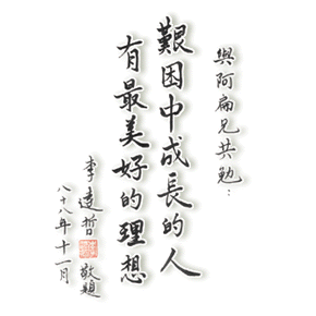 �����줵�ѻ��L�񳯤����R�x�W�A�]���L�����N��x�W�F�A�b�x�W�w �g���Q�X�~�A�ӳ�����b�x�W�]���L�|�Q�E�~(����ثe�|�Q�E��)�A�� �H������񳯤����R�x�W�H �o�ؼL�֤l�ڤ]�i�H������A�A�u�ڪ���R�x�W����]�w�g�ܤ֦��Ƥd �~�F�A�ڪ��ѯ������t�O��Զ����H�ڡA���H�ڦb�x�W���ܤ֦ܤּƤd �~�A�Ӧѯ������t�h�O�b�T�ʦh�~�e�q��s��x�W���a�ͮڡC�A������ �����ˬO�]���ԱѰk����x�W�A�ٮɮɨ���A�H�e�@�˷Q�ۥ��_�j�� �A�^�줤��j�������g�a�F���L�A����l��O�_�ǡA�]�h������H�A�u �O�Q���z�C�ҥH�ڪ�����M��A�������R�x�W�C�v �Ԩ�19991128�ۥ߱߳��Ĥ@���C | |