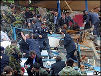 關於車臣體育場爆炸事件的外電報導... http://news.bbc.co.uk/2/hi/europe/3697715.stm#map Chechen president killed by bomb Reports of the total number killed in the blast at the citys Dynamo stadium vary between six and more than 30. Russian President Vladimir Putin said Mr Kadyrov was a true hero and vowed revenge for the attack thought to have been carried out by Chechen rebels. Mr Kadyrovs death is being seen as a huge blow to Moscows attempts to restore order in the troubled republic. Chechen rebels have been fighting for independence from Russia for more than a decade. Security forces throughout Chechnya have been placed on high alert and Russias Itar-Tass news agency has reported that five people have already been detained on suspicion of involvement with the attack, according to interior ministry officials. Kadyrov was hit in the head, shoulders and legs , said by Blast witness. Mr Kadyrovs assassination has drawn broad international condemnation. A White House spokesman said Washington resolutely rejected all acts of terrorism, while the European Commission described the blast as a heinous attack. VIPs targeted Mr Kadyrov was fatally wounded when a device exploded at 1035 (0635 GMT) during a ceremony marking victory in World War II. A spokesman for Russias emergency situations ministry said the bomb had gone off in a VIP seating area of the packed Dynamo stadium. There is uncertainty over the fate of the commander of Russian troops in Chechnya, Gen Valery Baranov, who was also in the stadium at the time. Officials have denied reports that he was killed by the blast and said he was fighting for his life in hospital. Panic-stricken Russian television showed chaotic scenes as panic-stricken spectators ran from the scene and brown smoke rose from the debris of the stand. One man was seen carrying an injured child to safety, while bursts of gunfire rang out. The emergency ministry spokesman said a second device had been found following the evacuation of the stadium. Chechen interior ministry officials quoted by the AFP news agency said at least 32 people had been killed and 46 injured. Mr Putin, speaking at the end of the Victory Day parade in Moscow, said: There can be no doubt that retribution is inevitable for those whom we are fighting today. It will be unavoidable for terrorists. He said Mr Kadyrovs work had proven there was a difference between bandits, terrorists and the Chechen people. He has appointed Chechnyas Prime Minister Sergei Abramov as acting president. Russia has been fighting separatists in Chechnya since the republic first tried to break away in the 1990s. Moscow has reimposed its rule in Grozny, but rebel attacks have continued, both in Chechnya and elsewhere in Russia. ☆People fled from the scene in terror ☆CHECHNYA ☆AKHMAD KADYROV (1951~2004) |
