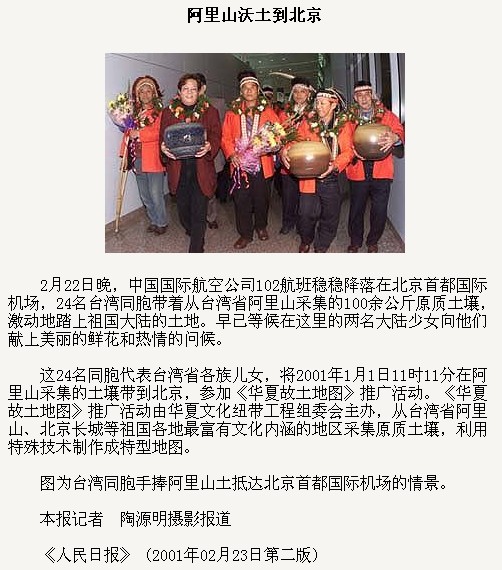 ¤S¦³·sÃÒ¾Ú³Q«õ¥X¨Ó¤F¡A¾Ú¡u«n¤è§Ö³ø¡vº¶¤S¥Z¥X2001/02/22 ¤G¤Q¥|¦W¥xÆW¦PM±a¦bªü¨½¤s©Ò±Ä¶°ªº¤@¦Ê¾l¤½¤çì½è¤gÄ[¡A¨ì¹F¥_¨Ê°ê»Ú¾÷³õªº·Ó¤ù¡C¡]http://myweb.hinet.net/home9/itaiwan/911s.jpg¡^ ¥t¥~¡A®Ú¾Ú¤H¥Á¤é³ø 2003¦~7¤ë12¤é³ø¾É¡A¥Ñ¤¤°ê¤KÓ¥Á¥DÄÒ¬£¡A°ê®a¥Á©e¡A°ê°È°|¥x¿ì¡B¹´¿ì¡B·s»D¿ì¡A°ê®a©v±Ð¨Æ°È§½©M¥þ°ê¬F¨ó´ä¿D»O¹´©eµ¥«ü¾É¡A¤¤°êªÀ·|¬ì¾Ç°|§åã¹ê¬Iªº¡uµØ®L¤å¤Æ¯Ã±a¤uµ{¡v¡Aªñ¦~¨Ó¦bªÀ·|¦U¬Éªº¼sªx¤ä´©¤U¡A²Õ´©M±À¼s¤F¤¤µØ¤å¤Æ¸g¨å»wŪ¨t¦C¬¡°Ê¤Îº~¦r¤å¤Æ±À¼s¬¡°Ê¡C ¡]Âà¶K¦Û«n¤è§Ö³ø¡G³s¾Ô²Ä¤G¦¸¬°¤¤°êªº¬¡°ÊÃDµü¡^ ¡@ |