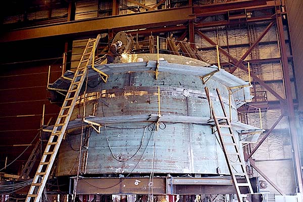 自製潛艦應該是能自主設計製造, 至少是主要艦體, 只是把分段造好的艦體拼裝起來, 其實意義真的太小. 趕快搞定潛艦儘速成軍才是當下重點. 看看 Northrop Grumman 這些潛艦施工照片, 結合造好的船段不會太難阿, 問題是這是我們要的嗎? 要到這個又能怎樣『潛艦國造』? 施作中模組 我國當然最好能 自製潛艦, 為了達到此目的, 應該設立潛艦設計研究專責機構積極研究發展自己的水下戰備, 利用購買潛艦的機會要求大量派員赴美培訓學習, 專注於最終擁有自主研發設計能量的長遠規劃. 不這樣打基礎下苦功, 只求短利, 肯定勞民傷財到頭來還是一場空, 何況難免延誤新潛艦成軍備戰, 堅持『潛艦國造』, 看似愛國其實都是誤國. 照這樣搞『潛艦國造』, 30年後還是只能繼續向外購買潛艦><. | |